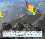 Shadow often dreams of Thunderbirds and uses one for transportation between the World Tree and Rock City.